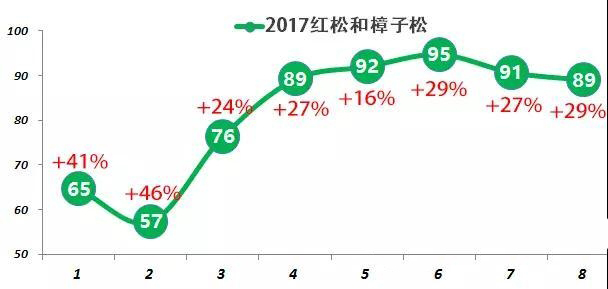 前8月累積進口輻射松80萬立方米,花旗松17萬立方米。8月分別進口12萬和2萬。